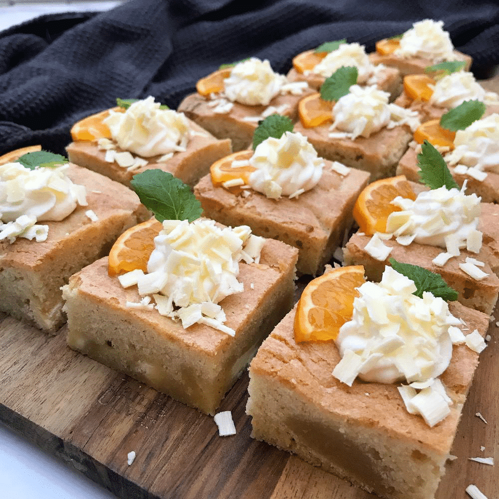 Blondie med hvid chokolade og appelsin Blondie med hvid chokolade Opskrift til 12345678910 personer Opskrift til 10 personer Forberedelsestid 10 minutterTilberedningstid 25 minutterSamlet tid 35 minutter Del Pin Print BeskrivelseEn nem og lækker opskrift på Blondie, som er brownie med hvid chokolade. Den er også tilsat lidt appelsinsaft, som komplimenterer den hvide chokolade rigtig godt. Server den som dessert sammen med en kugle is eller spis den som den er. Ingrediensliste 1 stk. appelsin 135 g. smør 2 stk. æg 150 g. sukker 2 tsk. vaniljesukker 110 g. marcipan 100 g. hvid chokolade 0,5 tsk. bagepulver 200 g. hvedemelLæg i kurven til - + Læg i kurv hos Nemlig.com Lægger i kurv... I samarbejde med Nemlig.comFremgangsmådeTænd ovnen på 175 grader varmluft.Smelt smør i mikroovn eller en gryde og stil det til side, så det kan køle en smule af.Riv marcipan og hak chokolade groft. Pres saften ud af appelsinen.Pisk æg, sukker og vaniljesukker luftigt.Tilsæt hvedemel, bagepulver, smeltet smør og appelsinsaft.Pisk det sammen ved lav hastighed.Vend til sidst revet marcipan og hakket hvid chokolade i dejen.Læg bagepapir i en form på cirka 16×26 cm. (du kan også smøre den med smør) eller en springform med størrelsen Ø26-28 cm.Hæld dejen i formen.Bag kagen på anden nederste rille i ca. 25-30 minutter.Tag den ud af ovnen og lad den køle af. Den skal virke lidt ubagt, når du trykker på den med fingrene. Sådan får du den bedste blondie.Kagen er bedst, hvis den laves dagen før og sættes på køl natten over.Den kan også sagtens fryses og så blot tages op 6 timer inden den skal bruges.Lås skærmOpskrift på blondie med hvid chokolade og appelsinHer får ud en super nem og lækker opskrift på “blondie” brownie med hvid chokolade og appelsin. En brownie lavet med hvid chokolade – heraf navnet “blondie” i stedet for brownie. Server den sammen med en kugle vaniljeis og eventuelt lidt frisk frugt eller friske bær. Så har du en helt fantastisk dessert med appelsin, som er både lækker og nem.Hvis man ikke er til appelsin, så kan den også sagtens laves uden saften fra appelsin. Appelsinen tilfører blot noget friskhed til kagen, som gør, at den ikke virker så tung som en brownie. Du kan også erstatte appelsinsaft med citronsaft i stedet, hvis du er mere til det. LÆS OGSÅ: Chokoladekage med bærskum Blondie kage med hvid chokolade og marcipanDen her hvide brownie er med hvid chokolade, marcipan og appelsin. Det er den bedste opskrift på blondie med appelsin, da den som sagt får en frisk smag fra den friske appelsin. Vi serverer som regel vaniljeis til, men du kan også lave en creme af creme fraiche og lidt flormelis eller vaniljesukker, hvis du gerne vil have noget, som er mere syrligt.Du kan anrette desserten på en tallerken eller anrette dem på et større fad, hvis du eksempelvis skal bruge dem til en buffet eller som del af tapas. Vi har pyntet dem med en lille klat flødeskum, hakket hvid chokolade og en lille skive af frisk appelsin. Derudover har vi pyntet med lidt citronmelisse. Det pynter godt på kagen og gør den derfor super velegnet til en større dessertbuffet.Følg også med på de sociale medier Du kan følge med på vores Facebookside, hvor vi ugentligt lægger spændende nye opskrifter op. Vi er også på Instagram, hvor vi nok er mest aktive. Du kan følge med på Instagram lige her.