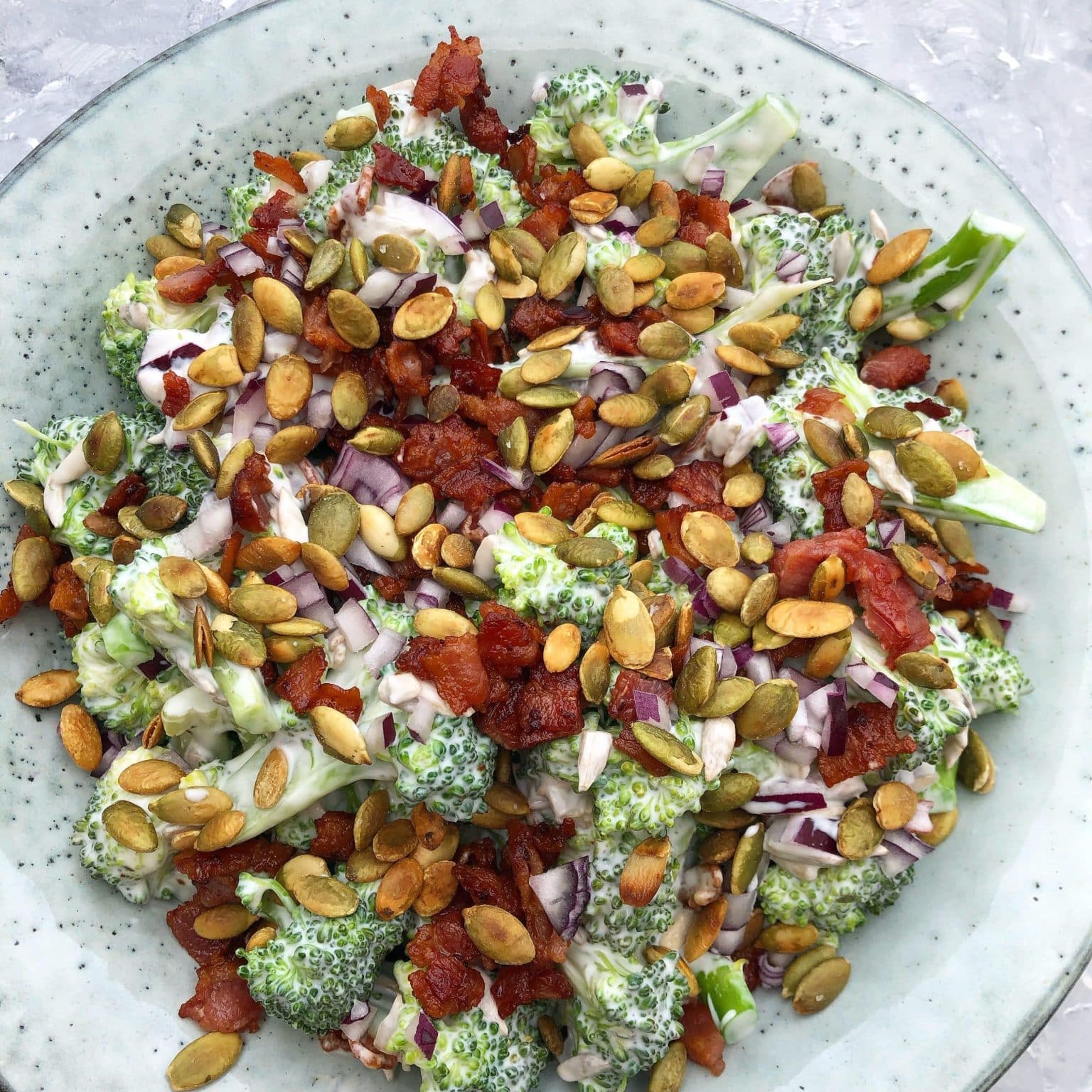 Broccolisalat med bacon × Broccolisalat med bacon Opskrift til 123456789101112131415161718192021222324252627282930 personer Opskrift til 4 personer Forberedelsestid 10 minutterTilberedningstid 20 minutterSamlet tid 30 minutter Del Pin Print BeskrivelseHer får du opskriften på en sprød og frisk broccolisalat, der er toppet med ristede græskarkerner og sprødstegt bacon.IngredienslisteFyld 450 g. broccoli 1 stk. rødløg 50 g. solsikkekerner 70 g. græskarkerner 200 g. bacon i ternDressing 50 g. mayonnaise 200 g. creme fraiche 2 tsk. sød sennep 1 tsk. hvidvinseddike 1 spsk. flormelis salt/peberLæg i kurven til - + Læg i kurv hos Nemlig.com Lægger i kurv... I samarbejde med Nemlig.comFremgangsmådeStart med at røre dressingen sammen.Pisk alle ingredienserne sammen og smag til med salt/peber. Du kan evt. også tilføje lidt mere sød sennep. Smag til, så den passer til din smag.Skær broccoli i mindre buketter.Sæt en stor gryde over med vand og bring i kog. Når vandet koger, smides broccoli ned i vandet. Tag herefter hele gryden af varmen. Lad broccoli ligge i det varme vand i 2-3 minutter. Hæld herefter vandet fra og lad broccolien afkøle helt.Hak rødløg fint.Varm en pande op uden fedtstof. Tilsæt bacon til panden og lad det stege til det har fået godt med farve over det hele.Gør en tallerken klar med køkkenrulle på. Hæld bacon over på tallerkenen og lad papiret suge noget af det overskydende fedt.Sæt panden tilbage på blusset.Tilsæt græskarkerner til panden og lad dem stege i det resterende baconfedt. Når de begynder at “poppe” og få lidt farve, så er de færdige. Tag dem af panden og lad dem køle af.Bland afkølet broccoli med rødløg, solsikkekerner, ristede græskarkerner (gem evt. lidt til pynt) og sprød bacon (gem evt. lidt til pynt).Bland dressingen i og vend det hele godt rundt, så alt er dækket.Anret broccolisalaten i en skål eller et dybt fad. Pynt med det resterende bacon og resten af græskarkernerne.Server med det samme eller lad det stå og trække i køleskabet indtil servering.Lås skærmOpskrift på broccolisalat med baconHer får du opskriften på vores bedste broccolisalat med bacon. Det er hvad vi betegner som verdens bedste broccolisalat, da den er fyldt med broccoli, sprød bacon og så er det hele vendt i den lækreste dressing. Sådan en salat med broccoli skal man på ingen måde undervurdere. Den er på sin vis en klassiker og vi laver den ofte til sommermaden.Vil du lave broccolisalaten en tand sundere, så kan du udskifte creme fraiche ud med skyr eller græsk yoghurt. Derudover kan du købe en light version af miracle whip som erstatning af den fede originale mayonnaise. Herved bliver det en lidt lettere dressing til broccolisalaten.LÆS OGSÅ: Tomatsalat med mozzarella Salat med broccoli og baconKombinationen af broccoli og bacon er bare så god. Det er virkelig en kombination, som man aldrig går galt i byen med. Hvis du dog gerne vil have en lidt lettere version, som vi også beskrev tidligere, så kan du dog også sagtens bytte bacon ud med stykker af sprød serranoskinke. Så får du stadig det her saltede, sprøde element, men bare i en knap så fed udgave.Kan jeg lave den på forhånd? Jep, det kan du sagtens. Så kan den også få lov til at trække smag.Følg med på de sociale medier Følg endelig med på vores Instagram eller Facebook, hvor du vil få daglig madinspiration. Husk at du kan blive medlem af ”Mit Mummum”, hvor du får din egen personlige profil med en række nye funktioner. Læs mere lige her. Vi vil elske at få dig med i vores madunivers.