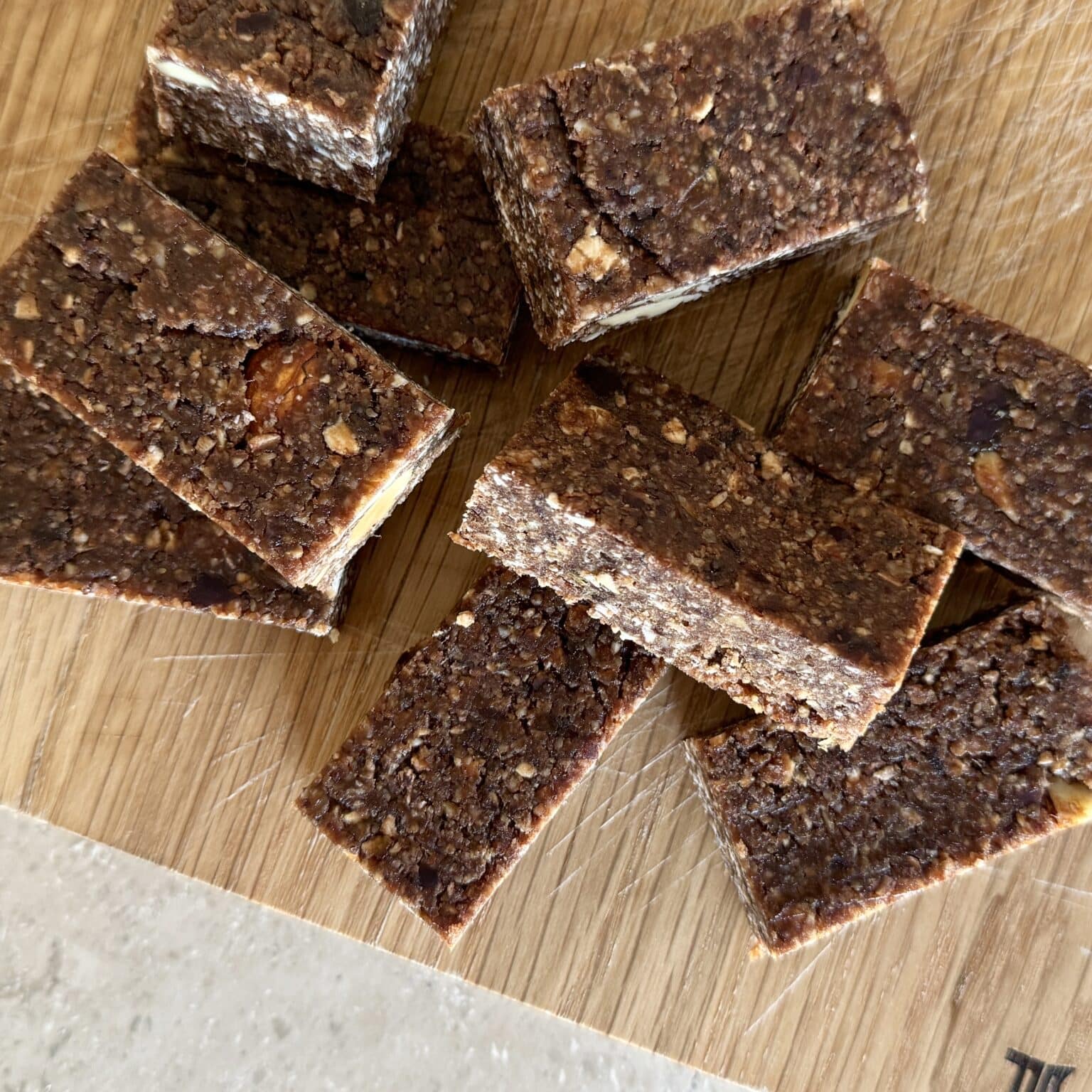 Dadelbarer med kakao og havregryn Dadelbarer med kakao og havregryn Opskrift til 123456789101112131415161718192021222324252627282930 stk. Opskrift til 12 stk. Forberedelsestid 20 minutterTilberedningstid 30 minutterSamlet tid 50 minutter Del Pin Print BeskrivelseOpskrift på sundere dadelbarer med kakao, havregryn og mandler. En nem hjemmelavet müslibar med dadler og kakao.Ingrediensliste 250 g. dadler 0,5 dl. vand 65 g. peanutbutter 25 g. akaciehonning 125 g. havregryn 100 g. mandler 25 g. kokosmel 1,25 spsk. bagekakaoLæg i kurven til - + Læg i kurv hos Nemlig.com Lægger i kurv... I samarbejde med Nemlig.comFremgangsmådeTænd ovnen på 190 grader varmluft.Gør en bageplade med bagepapir klar.På den ene halvdel fordeles mandlerne og på den anden halvdel fordeles havregryn.Bag dem i ovnen i ca. 7-8 minutter eller indtil de er gyldne.Tag dem ud af ovnen og lad dem køle af.Tag sten ud af dadler.Blend dadler, vand, kokosmel, havregryn, mandler, peanutbutter, akaciehonning og bagekakao indtil du har den ønskede konsistens.Kom massen på et stykke bagepapir og form det til et kvadrat, der er cirka 1,5 cm. højt.Fold bagepapir ind over den formede masse. Sæt det på frost i 30 minutter.Del dem i 12 barer.Lås skærmOpskrift på dadelbarer med kakao og havregrynNemme dadelbarer med kakao og havregryn, som lige er en my sundere end det man kan købe. De her dadelbarer eller müslibarer er nemlig sødet med dadler og lidt akaciehonning og er derfor uden hvidt sukker. Derudover er der masser af fylde i, da de er lavet med havregryn og mandler. De er derfor sundere end mange af de müslibarer, som man kan købe i supermarkederne. Vi elsker også at lave barer som dem her selv, da man så ved præcis hvad der er i dem.De er lavet med dadler osv., så det er ikke fordi, at de som sådan er kaloriefattige. Når vi skriver sundere, så handler det i større grad om, at de er lavet af råvarer, som man kender og ikke indeholder e-numre og unødvendigt meget sukker, som man godt kan finde i mange af de slags, som man køber. Müslibarer med dadler og kakaoDet er lækre og nemme müslibarer med dadler og kakao. De har en god fylde og er derfor geniale som en lille snack i madpakken eller bare til om eftermiddagen. Man laver dem i en bradepande og så kan man selv skære dem ud i den ønskede størrelse. Vi skærer dem ud som små barer og nogle gange også som små kvadrater, så det passer med sådan en lillle mundfuld. Ofte er det bare sådan en, som der skal til for lige at tage den værste sukkertrang der sent om eftermiddagen.Følg med på de sociale medierFølg endelig med på vores Instagram eller Facebook, hvor du vil få daglig madinspiration. Husk at du kan blive medlem af ”Mit Mummum”, hvor du får din egen personlige profil med en række nye funktioner. Læs mere lige her. Vi vil elske at få dig med i vores madunivers. Er du vild med vores opskrifter, så har vi også udgivet kogebøger, som du kan købe her.