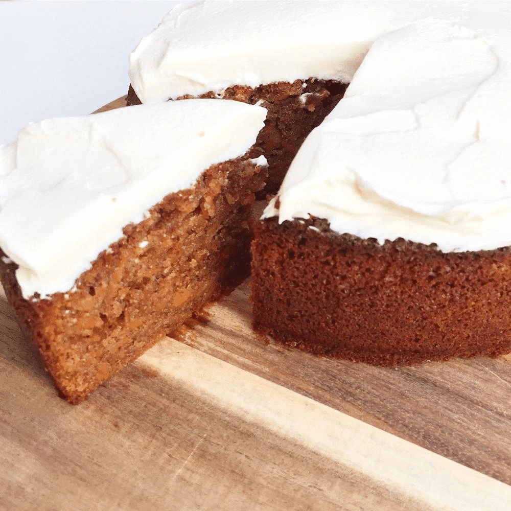 Nem opskrift på en lækker gulerodskage med den bedste vaniljefrosting. Den perfekte skærekage både til hverdag og fest. En svampet kage, som nærmest bliver bedre af at blive bagt i god tid.