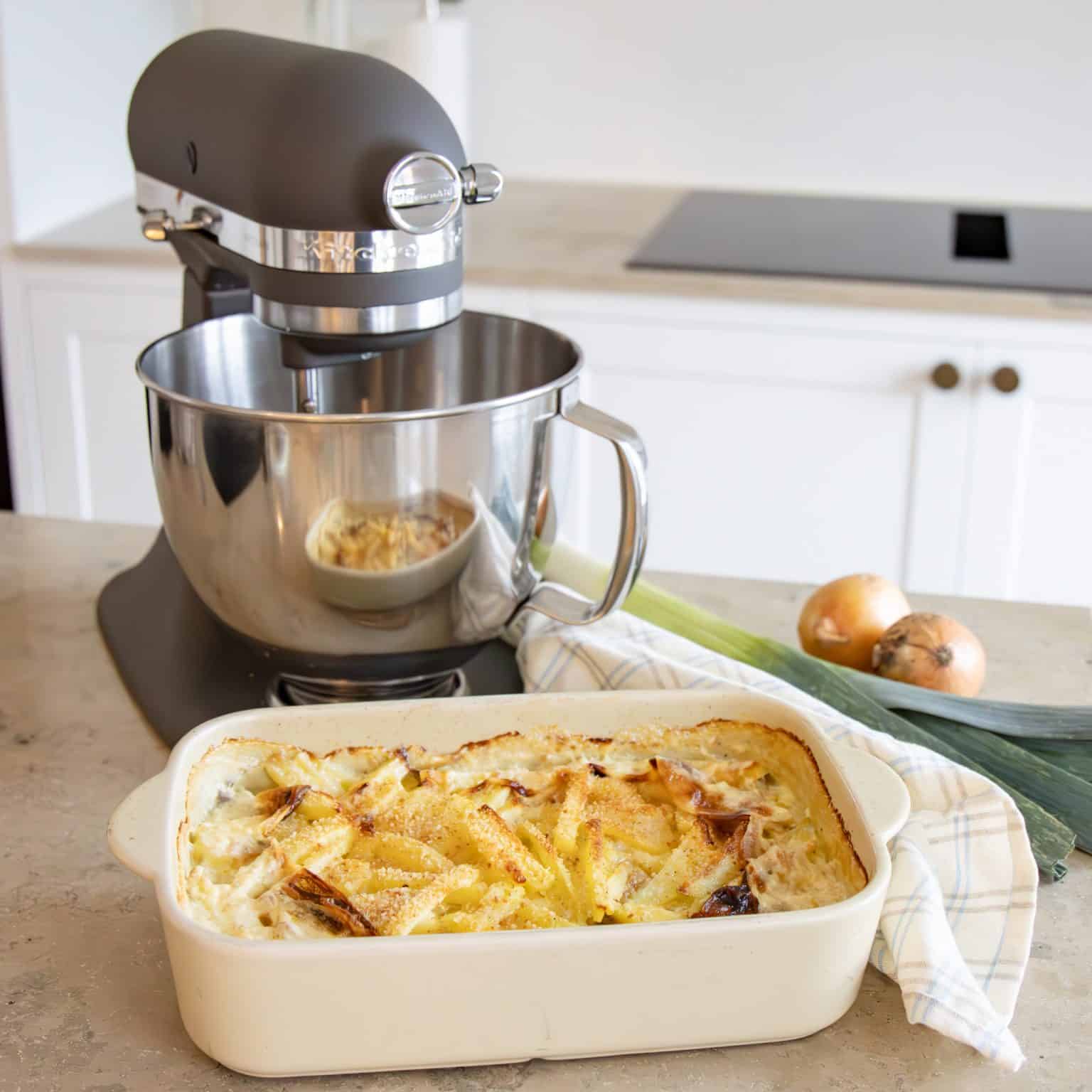 Janssons fristelse Janssons fristelse Opskrift til 123456789101112131415161718192021222324252627282930313233343536373839405051525354555657585960 personer Opskrift til 4 personer Forberedelsestid 20 minutterTilberedningstid 50 minutterSamlet tid 1 time og 10 minutter Del Pin Print BeskrivelseJanssons fristelse er et bagt kartoffelfad med ansjoser og er en svensk klassiker. Det er flødebagte kartofler med porre, løg og ansjoser.IngredienslisteFyld 2 spsk. smør 2 stk. løg 1 stk. porre 1 kg. kartoffel 1 ds. ansjosfileter 4 dl. piskefløde salt/peberTopping 20 g. rasp 2 spsk. smørLæg i kurven til - + Læg i kurv hos Nemlig.com Lægger i kurv... I samarbejde med Nemlig.comFremgangsmådeTænd ovnen på 200 grader varmluft.Skræl og skær kartofler i tynde stave.Pil løg og porre. Skær dem i tynde skiver. Vi brugte vores tilbehør til vores Kitchenaid røremaskine, så det var lynhurtigt at snitte.Smelt smør i en pande. Steg løg og porre til det bliver blødt.Dræn ansjosfileter og gem vandet.Smør et ildfast fad. Læg kartoffelstave, ansjosfileter, løg og porrer i flere lag. Afslut med kartofler.Bland fløde med salt og peber og tilsæt evt. lidt ansjosvand.Hæld flødeblandingen i fadet og top med rasp og et par klatter smør.Bages i 45-55 minutter. Hvis det bliver for mørkt på toppen kan du lægge et stykke staniol over den sidste bagetid.Lad Janssons fristelse hvile et par minutter inden servering.Lås skærmReklame: Opskriften er lavet i samarbejde med KitchenAidOpskrift på Janssons fristelseI samarbejde med KitchenAid får du her opskriften på Janssons fristelse bragt direkte fra Sverige! Vi har nemlig lavet en sjov udfordring med KitchenAid, hvor vi skulle bytte nationalret med en svensk madblogger. Vi fik så til opgave at lave Jansonss fristelse, som er sådan et bagt kartoffelfad lavet med porre, løg, kartofler, fløde og ansjoser. Det smagte så lækkert og er helt ideel som tilbehør til aftensmaden. Et sjovt twist på de klassiske flødekartofler, som vi ellers kender dem.For at gøre det ekstra nemt for os selv, så brugte vi snitte- og rivejernet fra KitchenAid, som er tilbehør, der sættes på røremaskinen. Så kan man lynhurtigt snitte helt tynde og fine skiver af løg og porrer, som der skulle bruges i denne ret. Hvis du lige står og mangler et julegaveønske, så kan man altså få meget lækkert tilbehør til sin røremaskine. Vi er især glade for rive- og snittejernet, som vi også bruger, når vi skal snitte grøntsager fint til lasagne, kødsauce osv.LÆS OGSÅ: Græskarkage med creme og valnødder Kartoffelfad med porrer, løg og flødeDet er et lækkert bagt kartoffelfad med porrer, løg og fløde. Vi havde ingen anelse om hvad det var inden, men vi er positivt overraskede. Det er også ret sjovt, at kartoflerne skæres i tynde stave som pommes frites og ikke i skiver, som når vi laver flødekartofler. Og lad dig endelig ikke skræmme af ansjosfileterne. De giver en god saltet smag til kartoffelfadet.Når først alle tingene er i fadet, så skal det egentlig bare passe sig selv i ovnen. Det er derfor nemt tilbehør med kartofler, som passer sig selv i ovnen. Vi kan anbefale at servere det til noget lækkert kød og evt. en simpel grøn salat.Følg med på de sociale medierFølg endelig med på vores Instagram eller Facebook, hvor du vil få daglig madinspiration. Husk at du kan blive medlem af ”Mit Mummum”, hvor du får din egen personlige profil med en række nye funktioner. Læs mere lige her. Vi vil elske at få dig med i vores madunivers. Er du vild med vores opskrifter, så har vi også udgivet kogebøger, som du kan købe her.
