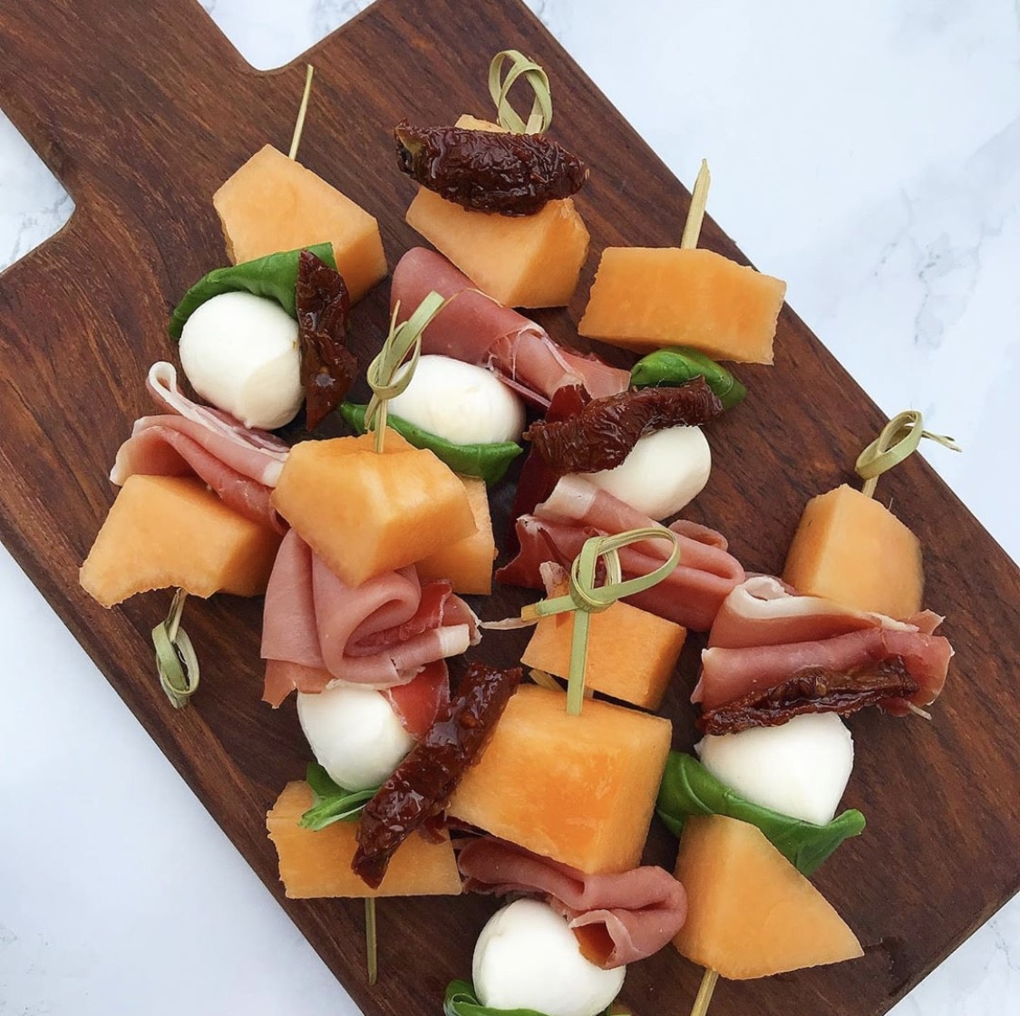Spyd med mozzarella og melon Spyd med mozzarella og melon Opskrift til 12345678910 personer Opskrift til 4 personer Forberedelsestid 10 minutterTilberedningstid 5 minutterSamlet tid 15 minutter Del Pin Print BeskrivelseDe lækreste sommerspyd med mozzarella, serranoskinke, cantaloupemelon, soltørrede tomater og basilikum. En super kombination der bare på alle måde minder om sommer og grillaften.Ingrediensliste 0,5 stk. cantaloupemelon 20 g. soltørrede tomater 0,25 bundt frisk basilikum 60 g. serranoskinke 70 g. små mozzarellakugler Læg i kurven til - + Læg i kurv hos Nemlig.com Lægger i kurv... I samarbejde med Nemlig.comFremgangsmådeSkær skrællen af cantaloupemelonen og fjern kernerne med en ske.Skær den i store tern.Tag blade af basilikum, dræn mozzarella og soltørrede tomater.Lav nu spyd med melon, soltørrede tomater, serranoskinke, basilikum og mozzarella.Lås skærmOpskrift på spyd med mozzarella og melonHer får du en opskrift på de nemmeste spyd med serranoskinke, mozzarella og melon. Nogle spyd vi elsker, da kombinationen af frisk, sødt og salt bare spiller godt sammen. De er super lækre som en lille appetizer eller forret. Især til om sommeren, hvor man måske gerne vil servere lidt lækkert til sine gæster imens man venter på maden.LÆS OGSÅ: Blinis med lakserilette Spyd til tapasDerudover serverer vi også disse spyd med mozzarella på tapasbordet, da det er en tapasidé som de fleste synes om. Der er stor sandsynlighed for, at der blot er en af de forskellige ingredienser der falder i smag hos gæsterne. Derudover er det flotte farvespil bare pænt på et tapasbord.Kan jeg lave dem klar på forhånd? Jep, du kan sagtens lave dem klar på forhånd. Læg dem på et fad eller en tallerken og læg dem på køl indtil servering.Kan jeg bruge andet end cantaloupemelon? Jep brug lige præcis den melon du bedst kan lide. Honningmelon eller netmelon smager også skønt. Vi valgte blot denne melon, da farverne også spiller rigtig godt sammen.Følg med på de sociale medier Følg endelig med på vores Instagram eller Facebook, hvor du vil få daglig madinspiration. Husk at du kan blive medlem af ”Mit Mummum”, hvor du får din egen personlige profil med en række nye funktioner. Læs mere lige her. Vi vil elske at få dig med i vores madunivers.