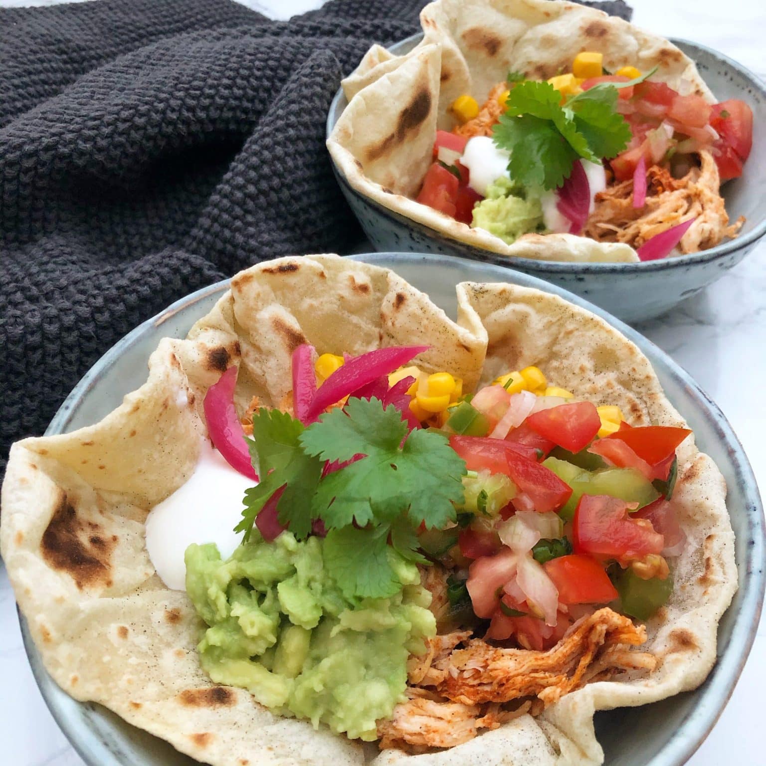 Tortillas med pulled chicken Tortillas med pulled chicken Opskrift til 12345678910 personer Opskrift til 2 personer Forberedelsestid 30 minutterTilberedningstid 1 timeSamlet tid 1 time og 30 minutter Del Pin Print BeskrivelseHjemmelavede tortillas er der intet der slår. Især ikke når de fyldes med lækkert pulled chicken, pico de gallo, majs, avocado og syltede rødløg.IngredienslisteHjemmelavede tortillas 250 g. hvedemel 65 g. smør 1,25 dl. vand 0,5 tsk. saltPulled chicken 280 g. kyllingebryst 1 stk. hønsebouillonterning 1 tsk. chiliflager 1 tsk. paprika salt 1 tsk. chilisauce 0,5 tsk. sukkerFyld 100 g. majs på dåse 0,5 bundt frisk koriander 0,5 stk. grøn peberfrugt 15 g. jalapenos 3 stk. tomat 0,25 stk. løg 50 g. creme fraiche 1 stk. avocado 30 g. syltede rødløgLæg i kurven til - + Læg i kurv hos Nemlig.com Lægger i kurv... I samarbejde med Nemlig.comFremgangsmådeBring en gryde med vand i kog. Opløs bouillonterningen heri.Ren kyllingebrystene og kog dem i bouillonvandet i cirka 25 minutter.Nu skal pico de gallo laves. Hak tomater, jalapenos, grøn peberfrugt, løg og koriander fint. Bland det i en skål.Dræn derefter majs og hæld dem i en skål.Mos avocadoen og smag det til med salt og peber.Når kyllingen er færdig trevles det med to gafler. Herefter vendes det med krydderier og sukker.Anret nu dine tortillas med pulled chicken, pico de gallo, majs, avocado, creme fraiche og evt. syltede rødløg.TortillasHvedemel og salt blandes i en skål.Smør smuldres i og det æltes med fingrene.Vandet tilsættes og det æltes yderligere indtil du har en smidig dej.Dejen hviler 15 min.En tør pande opvarmes på komfuret (middelhøj varme).Derefter deles dejen i 10 lige store stykker og de rulles ud, indtil du har den ønskede tykkelse.Pandekagerne bages kort på den tørre pande på begge sider.Placeres på en tallerken overdækket med et fugtigt viskestykke. På den måde undgår du, at de bliver tørre.Lås skærmOpskrift på tortillas med pulled chickenNylavede tortillas med pulled chicken, pico de gallo, avocado, majs, creme fraiche og koriander. En virkelig skøn ret fra det mexikanske køkken.Vi elsker at lave hjemmelavede hvedetortillas, da de ikke tåler nogen sammenligning med dem man kan købe i supermarkedet. Det kræver lidt ekstra tid, men det er bestemt tiden værd. De kræver få ingredienser, så de er meget billige at lave – det er bare tid der skal bruges til at rulle dem ud.LÆS OGSÅ: Fajitas med hjemmelavede tortillas Mexicanske pandekager med kyllingMåske du også har en tendens til altid at lave mexicanske pandekager med oksekød. Det kan vi i hvert fald ofte komme til. Derfor er det altså også super fint at prøve noget andet fyld. Den her udgave med pulled chicken er så lækker! Selve kyllingen bliver kogt, hvorefter man river den fra hinanden, som når man laver pulled pork. Den bliver herefter vendt i lækre krydderier, som giver kyllingen masser af smag.Kan jeg bruge andet end kylling som fyld? Der er mange muligheder for kød. Vi laver også sommetider disse tacos med oksekød stegt med tacokrydderi. Det smager også rigtig godt. Derudover kan du også helt udelade kødet, og så har du en lækker vegetariske taco.Følg med på de sociale medier Følg endelig med på vores Instagram eller Facebook, hvor du vil få daglig madinspiration. Husk at du kan blive medlem af ”Mit Mummum”, hvor du får din egen personlige profil med en række nye funktioner. Læs mere lige her. Vi vil elske at få dig med i vores madunivers.