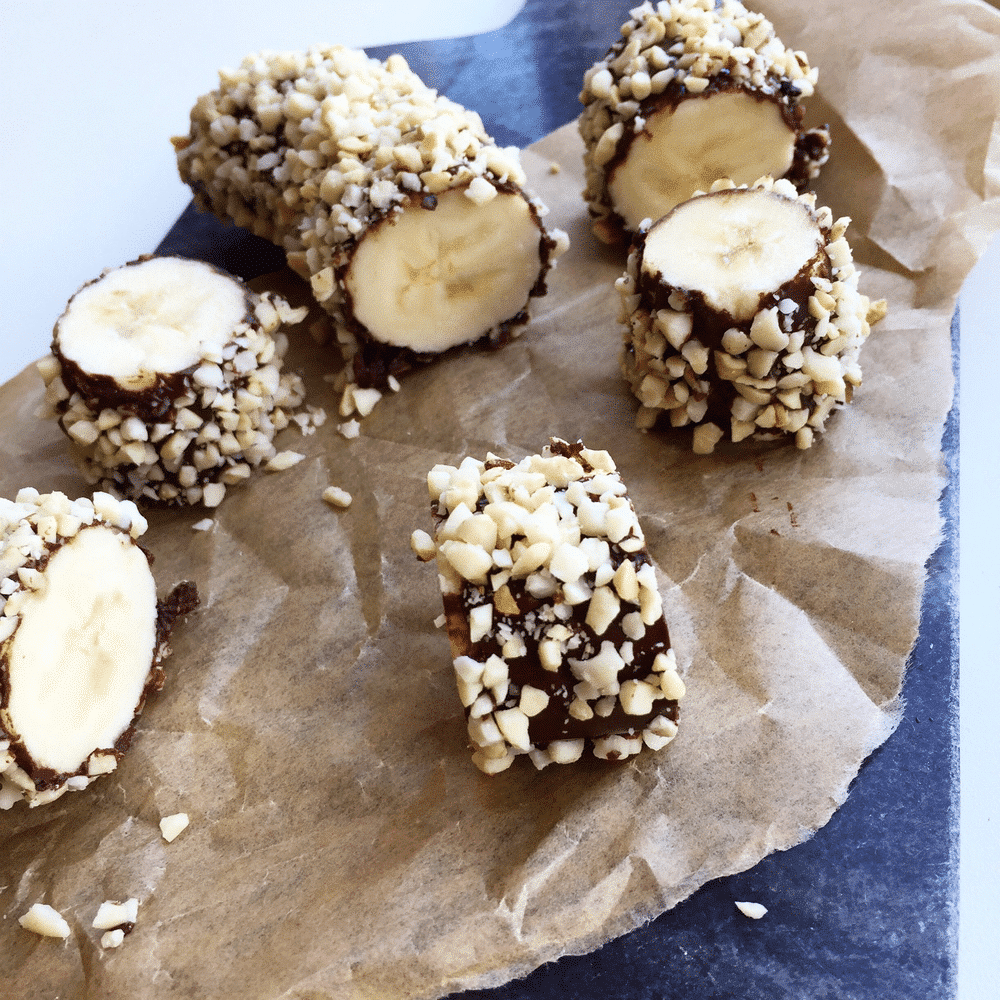 Verdens nemmeste banansnack Verdens nemmeste banansnack Opskrift til 2468 personer Opskrift til 2 personer Forberedelsestid 10 minutterTilberedningstid 30 minutterSamlet tid 40 minutter Del Pin Print BeskrivelseDen nemmeste opskrift på en simpel banansnack, som vi mener er verdens nemmeste snack. Den består af kun 3 ingredienser, er nem og hurtig at lave. Og så smager den bare godt! Opbevar bananerne i køleskabet og vent med at skære dem ud, indtil de skal spises. Så undgår du nemlig, at bananen bliver brun.Ingrediensliste 2 stk. banan 70 g. 70% mørk chokolade 50 g. mandlerLæg i kurven til - + Læg i kurv hos Nemlig.com Lægger i kurv... I samarbejde med Nemlig.comFremgangsmådeSkræl bananerne. Smelt chokoladen over vandbad (eller endnu nemmere: smelt det i mikroovnen i en skål).Hak mandler fint.Pensl bananerne med chokolade og tril herefter i hakkede mandler.Lad det størkne og sæt enten i køleskabet eller i fryseren – alt efter om du vil have små is eller blot bananer med chokolade.Lås skærmOpskrift på verdens nemmeste banansnackOpskrift på hvad vi mener er verdens bedste og nemmeste banansnack. Den består af kun tre ingredienser og er super lækker. Vi laver den altid, når vi har lyst til noget sødt, men stadig vil have god samvittighed. Det er en super sund snack, som består af banan penslet med mørk chokolade, som er rullet i nødder. Her kan man vælge lige præcis den nød man har lyst. Almindelige, hakkede mandler, peanuts, hasselnødder eller ristede mandler. Amen, det hele smager bare godt og vi skifter lidt rundt i det, alt efter hvilket humør vi er i. Det er en af de sunde snacks, som vi bare aldrig bliver trætte af.Man kan også kalde dem for en slags banan-sushi. Man kan nemlig skære dem ud i lidt tykke skiver og så kunne det godt ligne en form for sushi. Uanset hvad, så er det super lækkert og de kan spises både frosne og friske. Lav evt. et frugtfad med masser af forskelligt frugt og så disse banansnacks. De plejer altid at falde i god jord!LÆS OGSÅ: Sund kanelkage Følg med på de sociale medier Følg endelig med på vores Instagram eller Facebook, hvor du vil få daglig madinspiration. Husk at du kan blive medlem af ”Mit Mummum”, hvor du får din egen personlige profil med en række nye funktioner. Læs mere lige her. Vi vil elske at få dig med i vores madunivers.