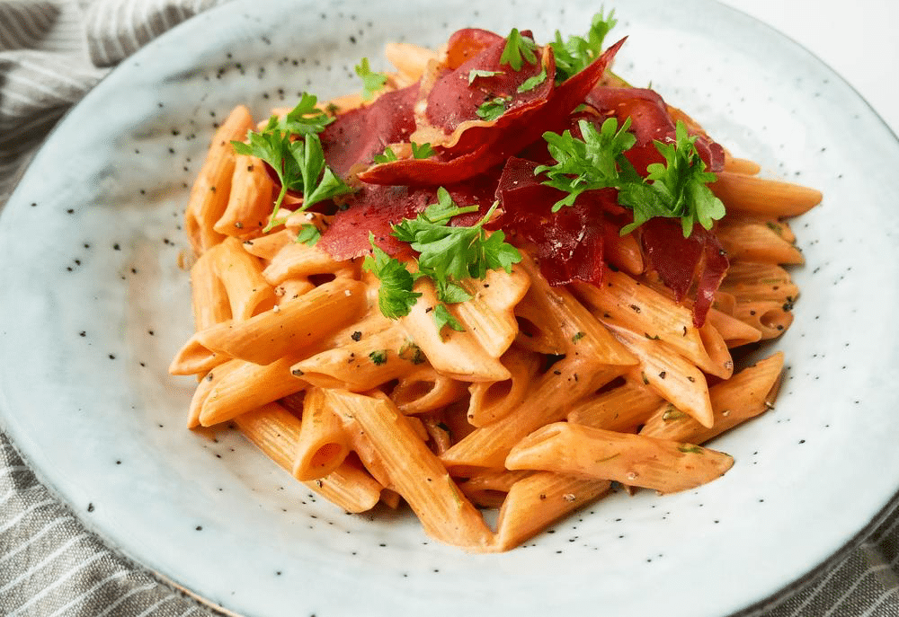 Vodka penne med parmaskinke Vodka pasta med parmaskinke Opskrift til 123456789101112131415161718192021222324252627282930 personer Opskrift til 2 personer Forberedelsestid 10 minutterTilberedningstid 20 minutterSamlet tid 30 minutter Del Pin Print BeskrivelseEn lækker opskrift på den italienske pastaret, Vodka Penne. Det er en cremet pastaret, som er vendt i en tomatsauce lavet på fløde. Vi har valgt at toppe den med parmaskinke, som er sprødstegt i ovnen. Man kan også lige toppe med frisk parmesanost, så har du altså en helt fantastisk aftensmad, som også vil være ideel at servere til gæster. Ingrediensliste 200 g. pasta penne 90 g. parmaskinke 1 stk. løg 1 spsk. smør 5 spsk. vodka 20 g. tomatpure 2,5 dl. madlavningsfløde 0,25 bundt frisk persille salt/peberLæg i kurven til - + Læg i kurv hos Nemlig.com Lægger i kurv... I samarbejde med Nemlig.comFremgangsmådeTænd ovnen på 200 grader. Læg skinke ud på en bageplade beklædt med bagepapir. Pensl skiverne med lidt olie.Sæt skinken ind i ovnen og lad det blive sprødt. Det tager cirka 10-13 min. alt afhængig af hvor god din ovn er.Sæt vand over til pasta og salt det godt. Kog pasta efter pakkens anvisning.Hak løg fint.På en pande smeltes 1 spsk. smør. Herefter tilsættes løg, som svitses i 4-5 min.Tilsæt nu vodka og lad det simre 1 min, inden tomatpure og madlavningsfløde tilsættes. Lad det simre 5 min. Efter de 5 min, tilsættes friskhakket persille. Smag til med salt og peber.Dræn pastaen (gem noget af pastavandet).Tilsæt til sidst din kogte pasta og vend pastaen godt rundt i saucen. Tilsæt evt. noget af pastavandet for en mere cremet sauce.Server din pasta sammen med stykker af serranoskinke. Drys evt. friskhakket persille på toppen og også parmesanost, hvis den skal sidde lige i skabet.Lås skærmOpskrift på vodka penne med parmaskinkeVodka Penne er en italiensk pastaret, som i sig selv er meget simpel. Vi har valgt at servere den med sprød parmaskinke, da det lige løfter retten, men man kan også sagtens udelade det, så man får en pastaret uden kød og en vegetarisk ret. Måske du synes det lyder mærkeligt, at der skal vodka i, men vodkaen gør et eller andet helt fantastisk ved tomatsmagen i retten. Den kan selvfølgelig også udelades, men det synes vi bestemt er en skam. Vodka pasta er en velkendt ret, som du altså bare må prøve. Måske du alligevel har en rest vodka til at stå i skabet, som trænger til at blive brugt. Så er det altså helt ideelt at lave denne nemme og simple hverdagsret. Du skal ikke være bange for, at der er vodka i. Alkoholen fordamper, når den får varme. Men som sagt, så kan du også godt udelade det. Det gør bare noget virkelig godt for smagen.LÆS OGSÅ: Klik her og find alle vores opskrifter på pastaretter Vodka pasta opskriftVi synes helt bestemt, at du skal prøve vores opskrift på vodka pasta. Det giver dig en virkelig simpel, men smagfuld pastaret. Top den også gerne med parmesanost, hvis den lige skal løftes til det sidste niveau. Men ellers er den altså også bare rigtig god uden. I stedet for parmaskinke, så kan du også bruge almindelig bacon eller serranoskinke. Du kan også bruge en anden type pasta, eksempelvis skruer eller spaghetti. Følg med på de sociale medier Følg endelig med på vores Instagram eller Facebook, hvor du vil få daglig madinspiration. Husk at du kan blive medlem af ”Mit Mummum”, hvor du får din egen personlige profil med en række nye funktioner. Læs mere lige her. Vi vil elske at få dig med i vores madunivers.